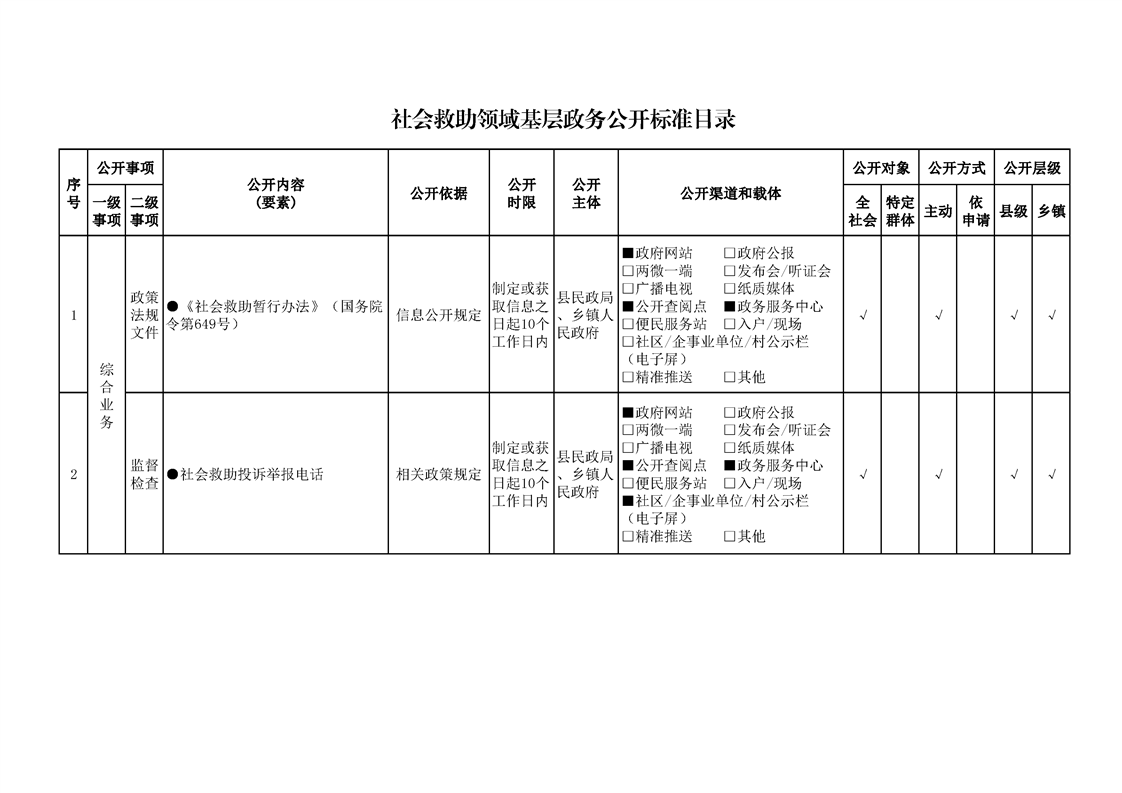 • 公開目錄: 試點(diǎn)領(lǐng)域基層政務(wù)公開標(biāo)準(zhǔn)目錄