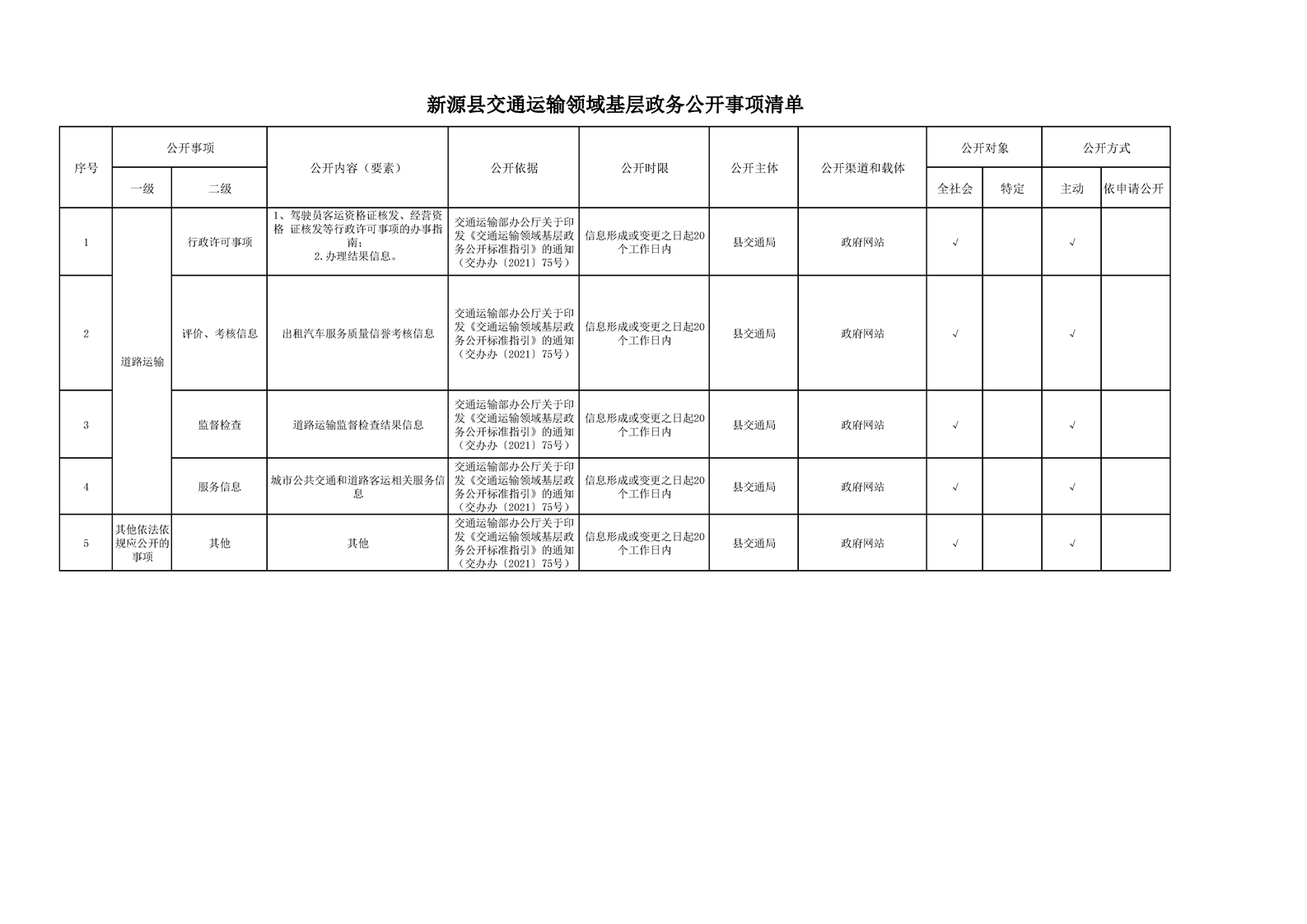 • 公開目錄: 試點領域基層政務公開標準目錄