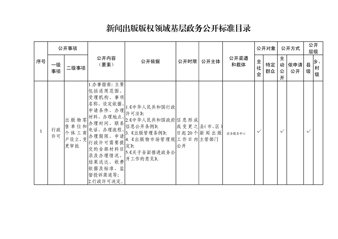 • 公開目錄: 試點領域基層政務公開標準目錄