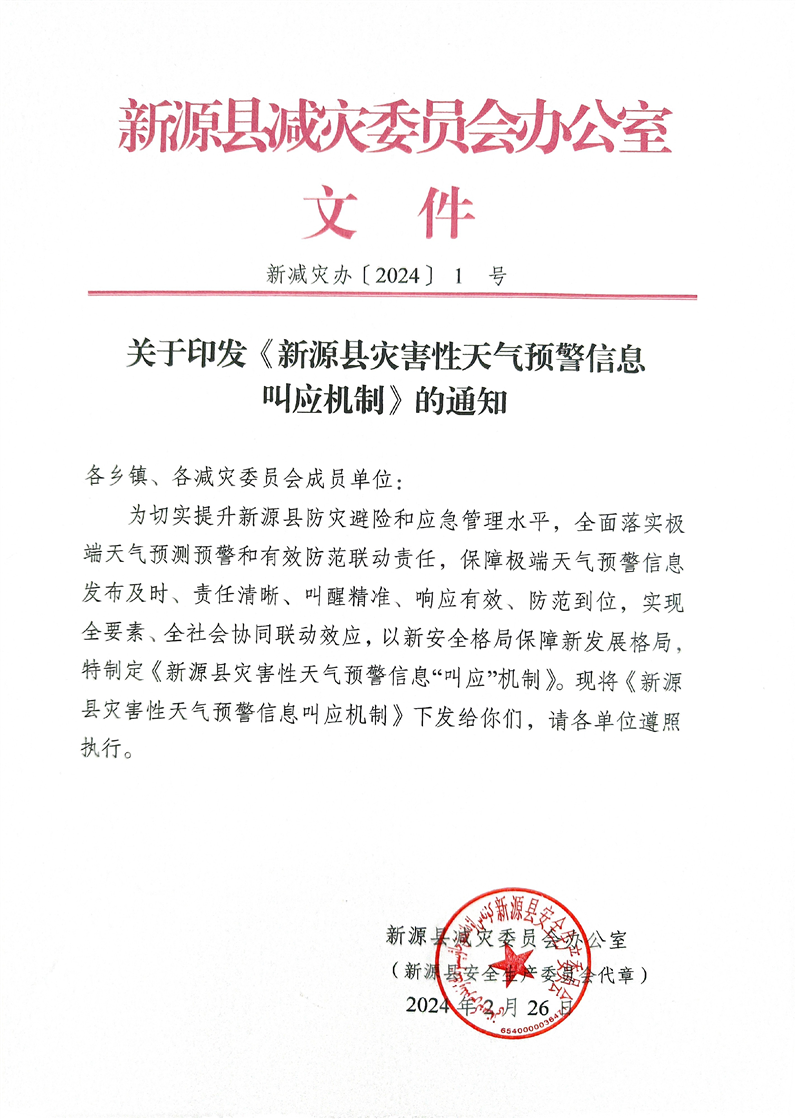 新源縣災害性天氣預警信息叫應機制