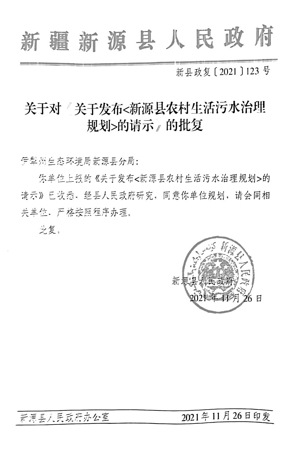 《新源縣農村生活污水治理規劃》已經新源縣人民政府會議審議通過,現印發你們,請認真貫徹執行。