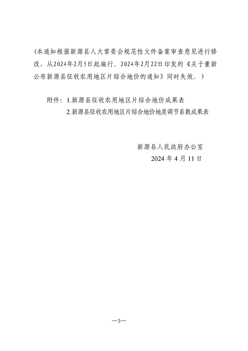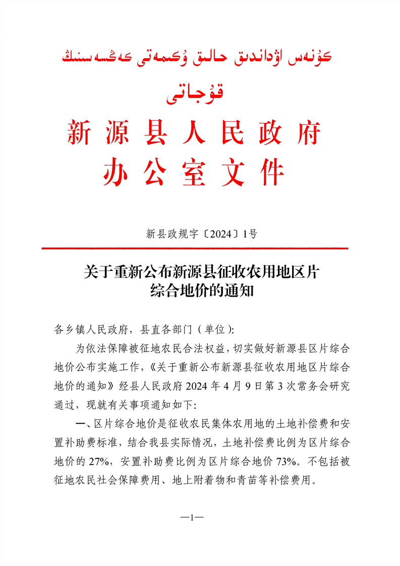 關(guān)于重新公布新源縣征收農(nóng)用地區(qū)片綜合地價的通知