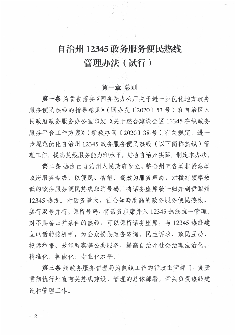 關(guān)于印發(fā)《自治州12345政務(wù)服務(wù)便民熱線管理辦法(試行)》的通知