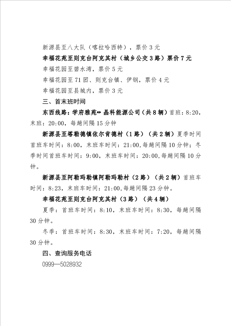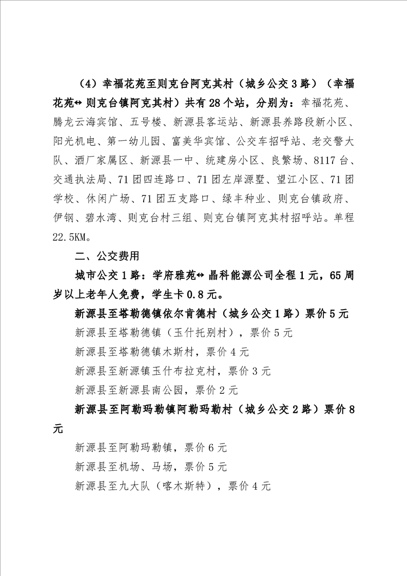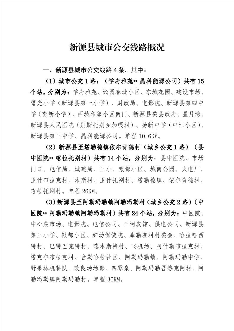 新源縣城市公交線路概況