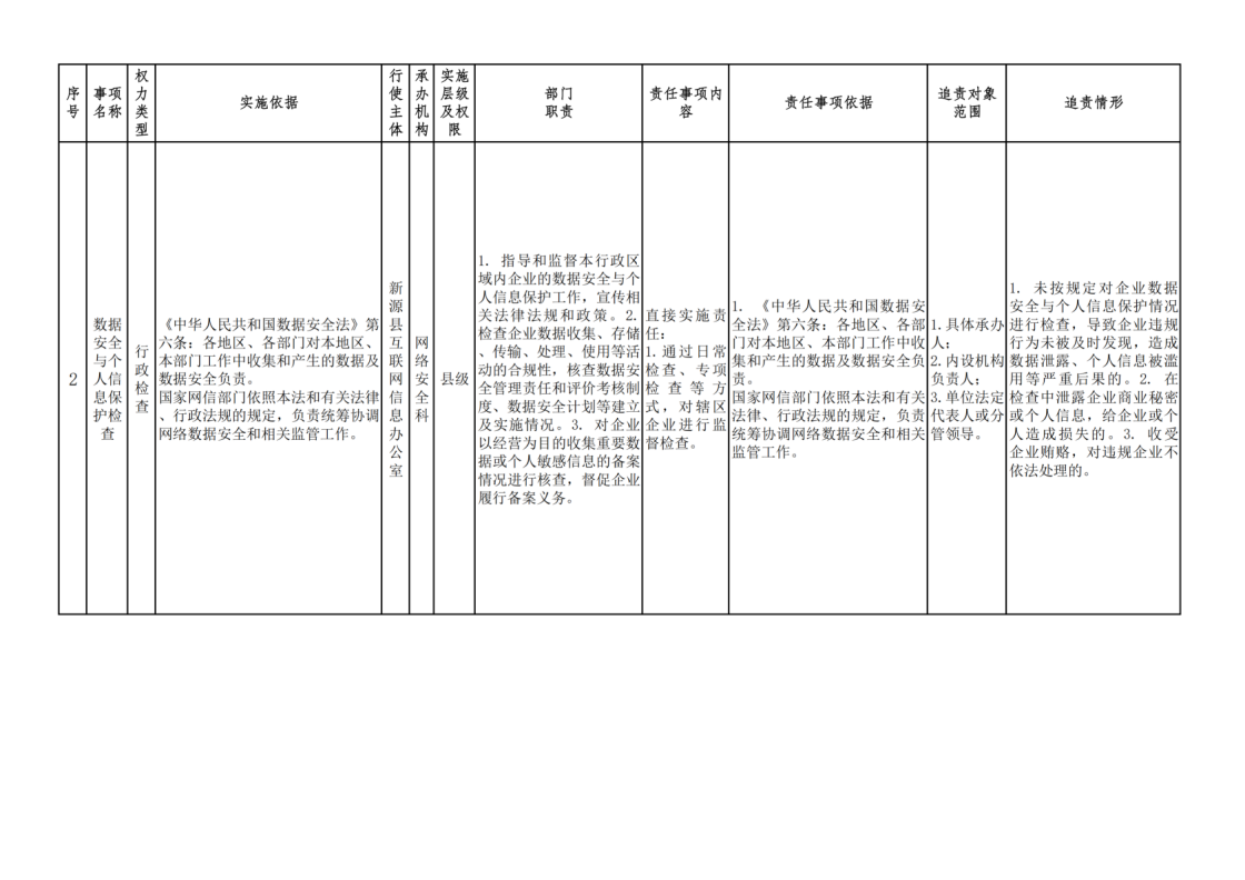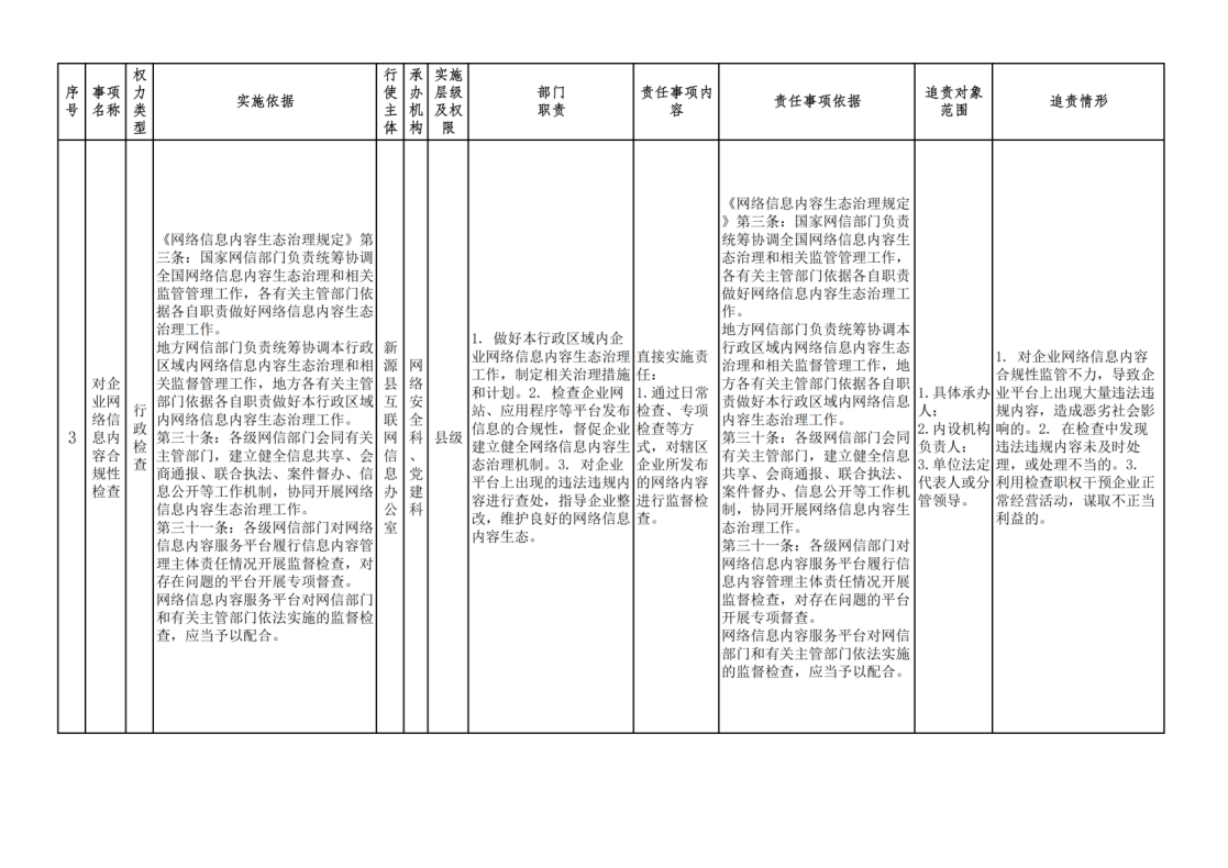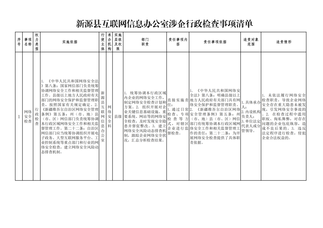 新源縣互聯網信息辦公室涉企行政檢查事項清單