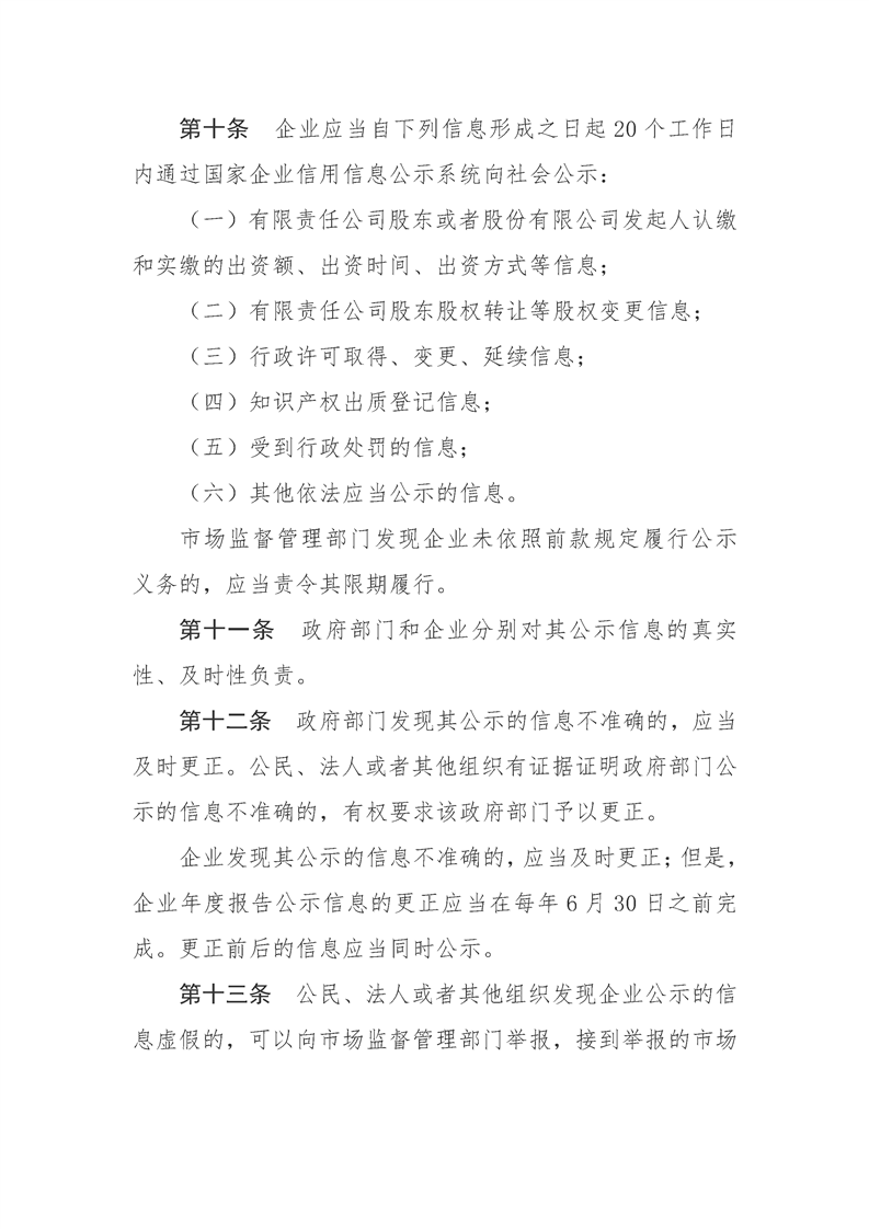 企業信息公示暫行條例