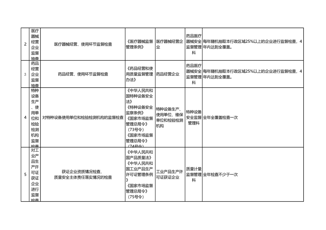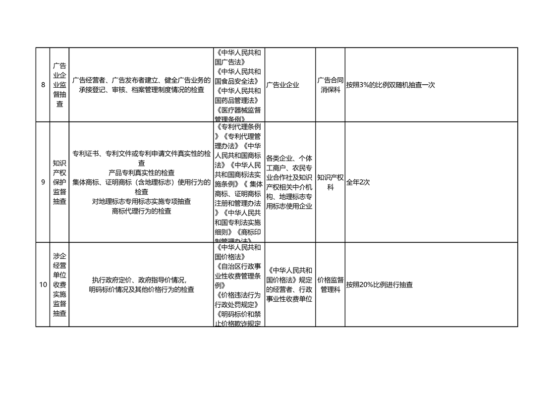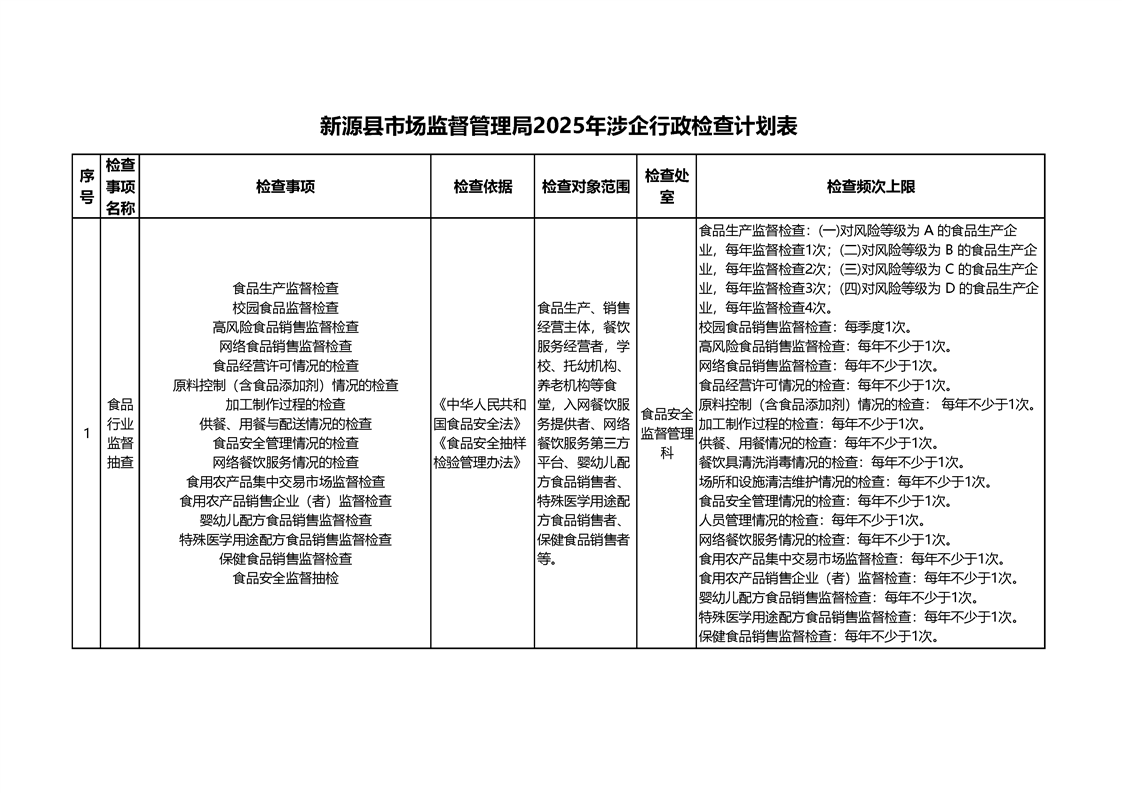 新源縣市場監督管理局2025年涉企行政檢查計劃表