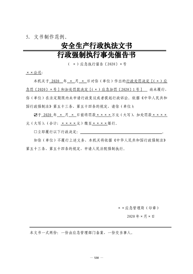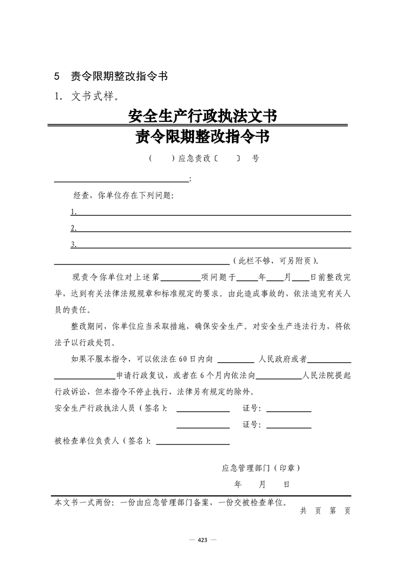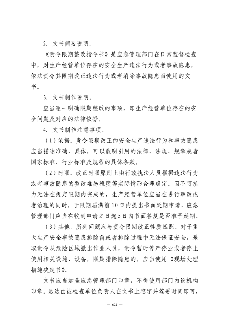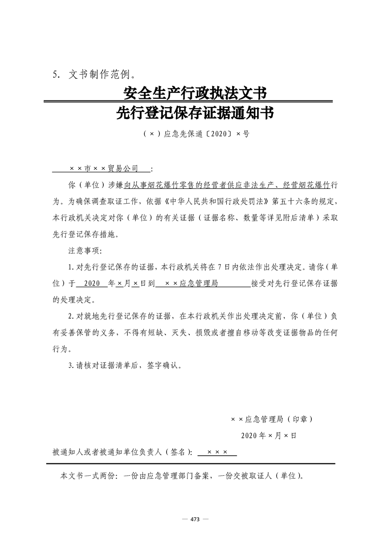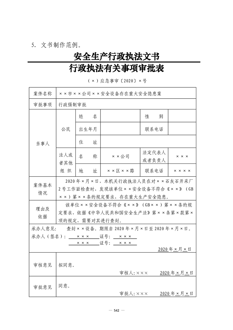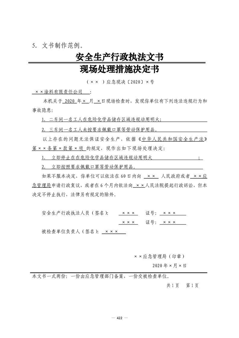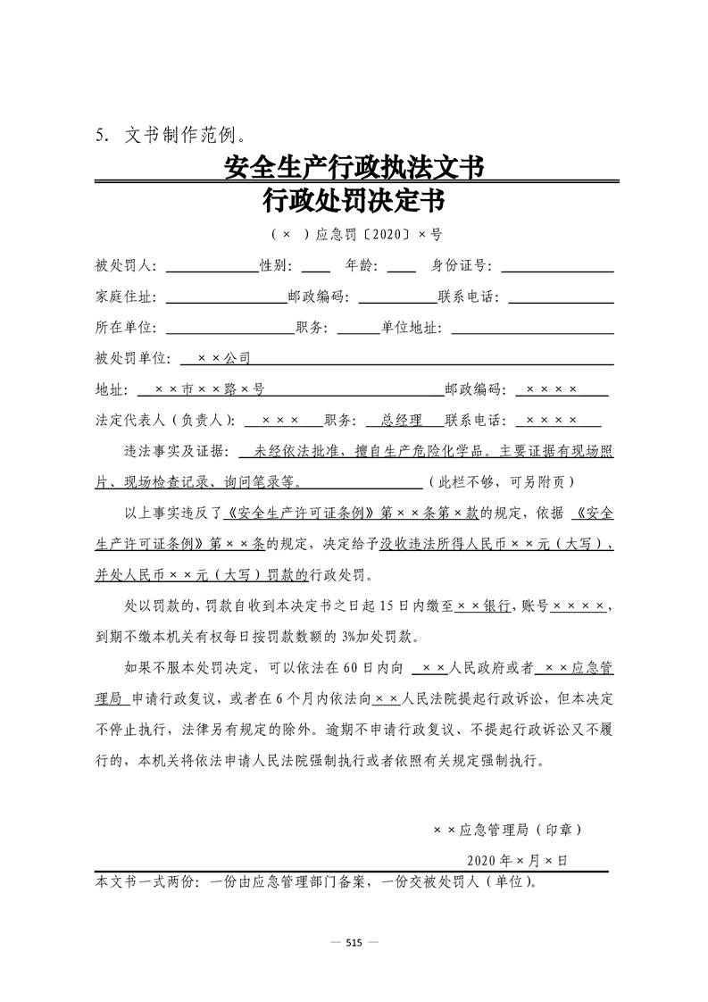 新源縣應(yīng)急管理局安全生產(chǎn)執(zhí)法文書樣式及說明