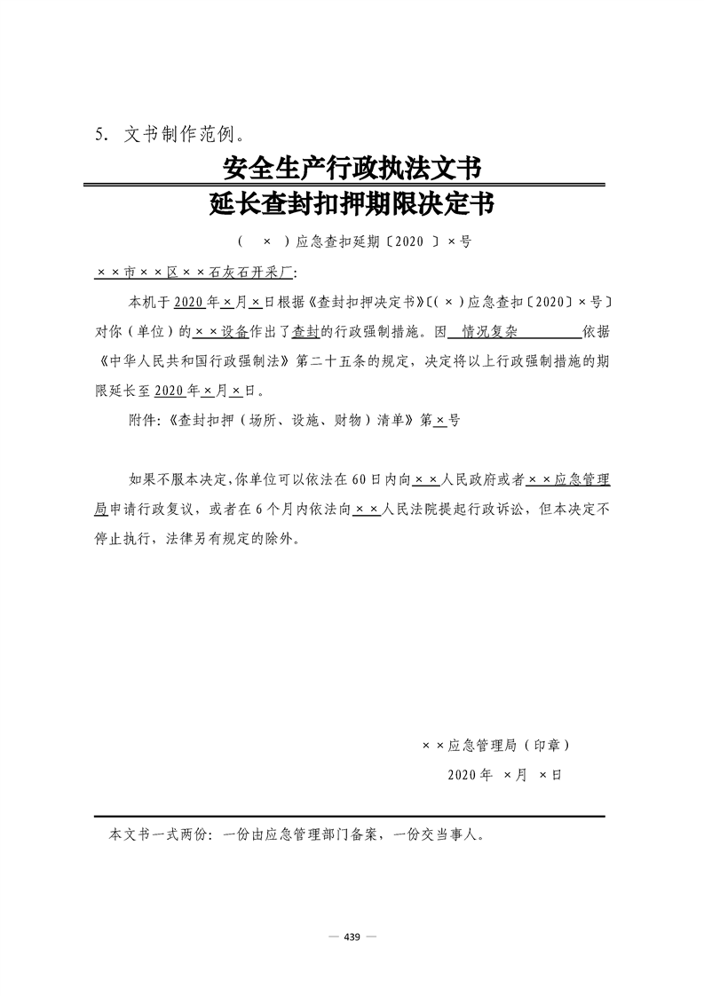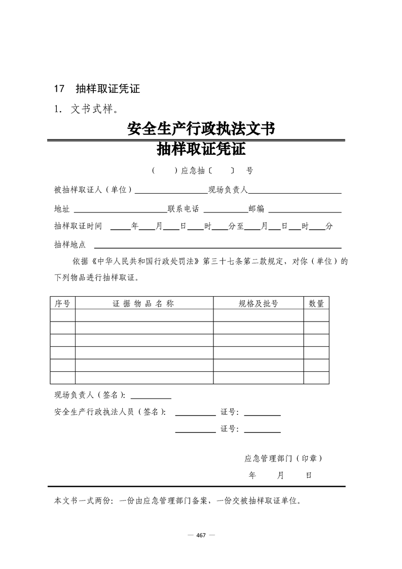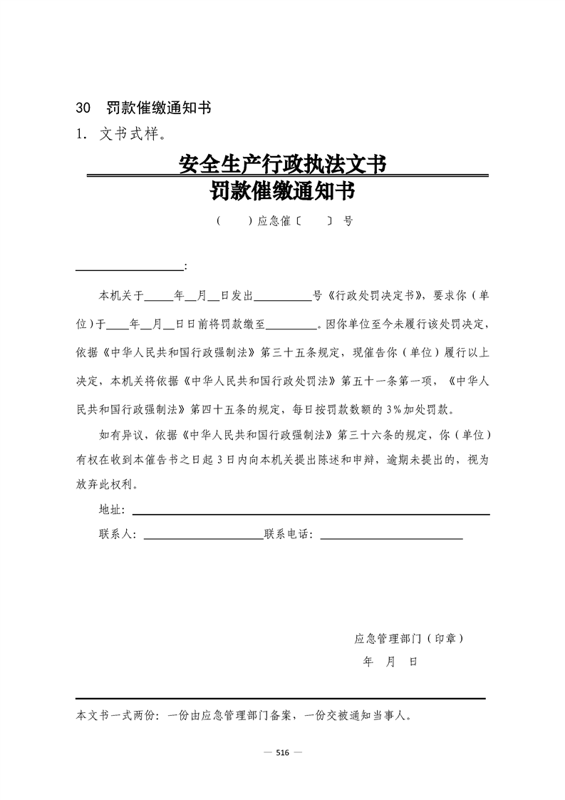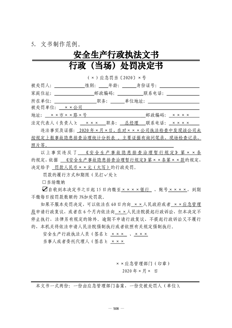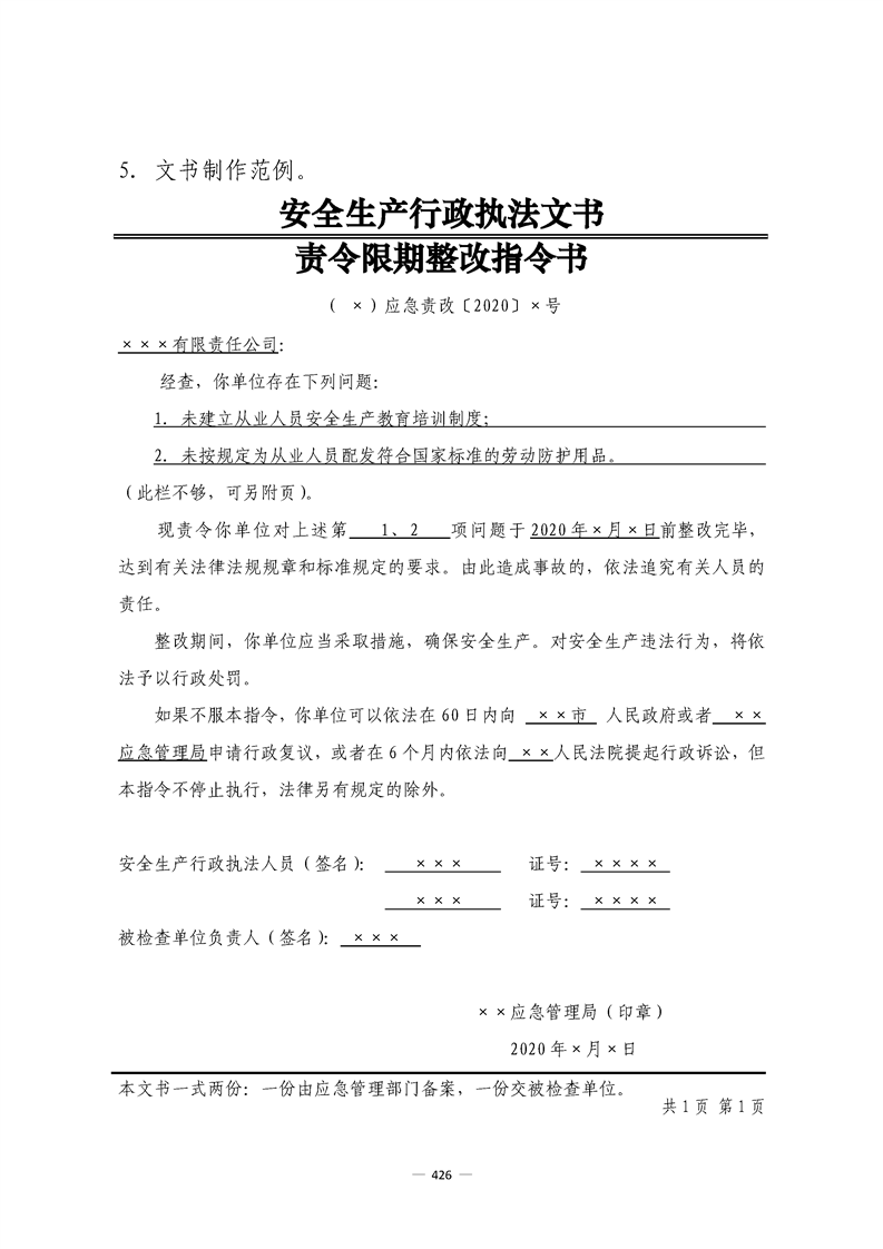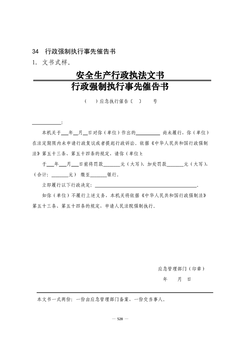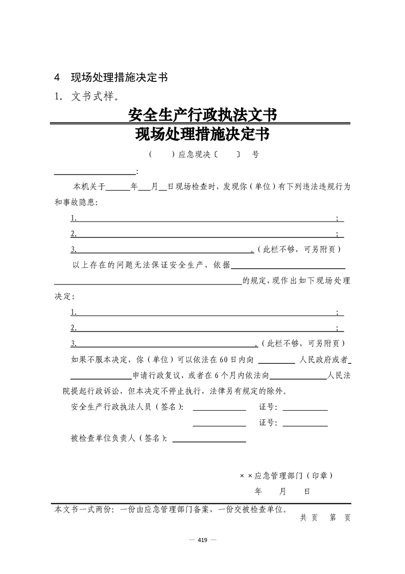 新源縣應(yīng)急管理局安全生產(chǎn)執(zhí)法文書樣式及說明