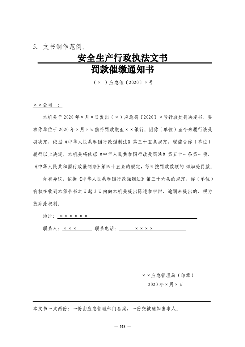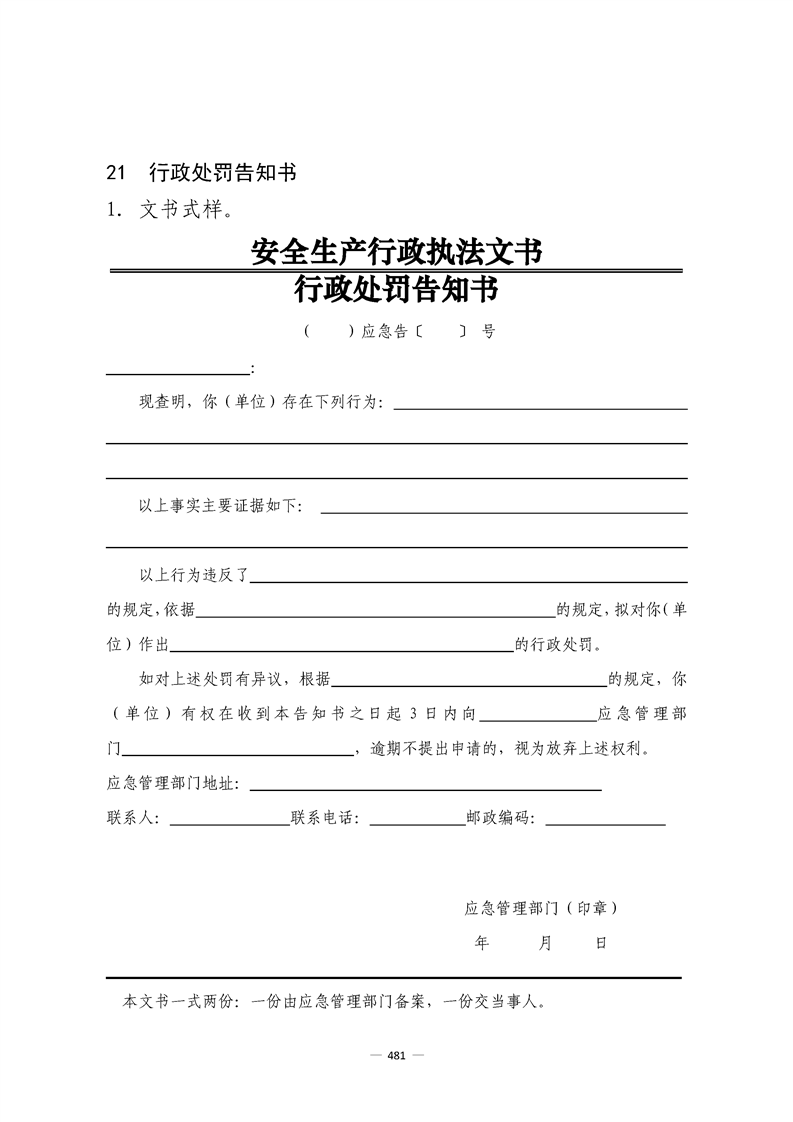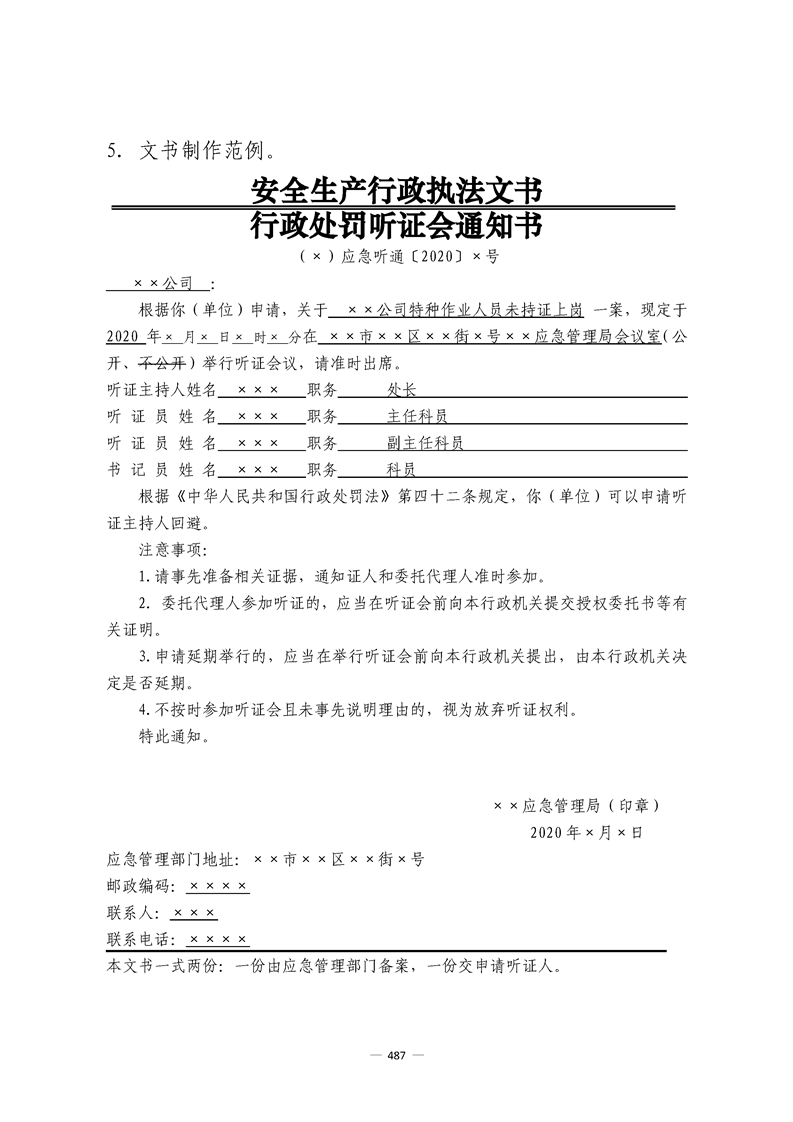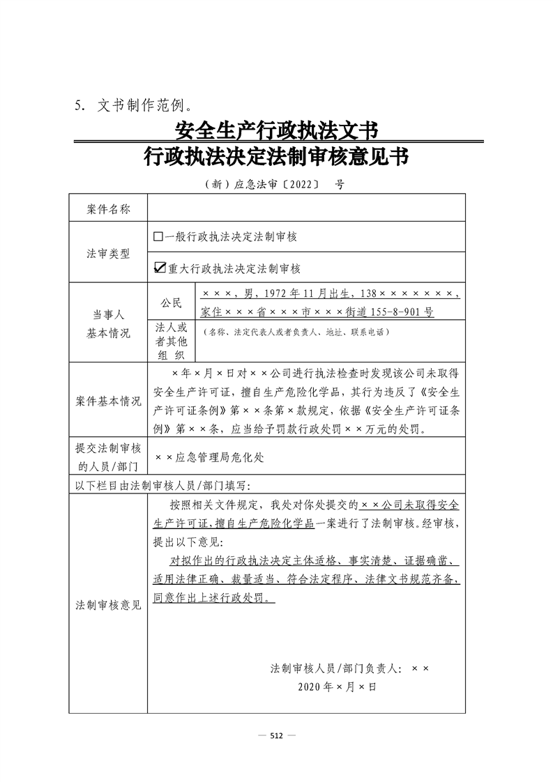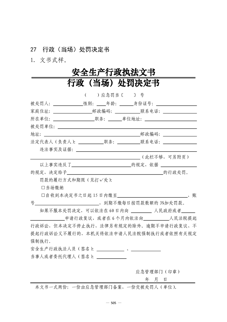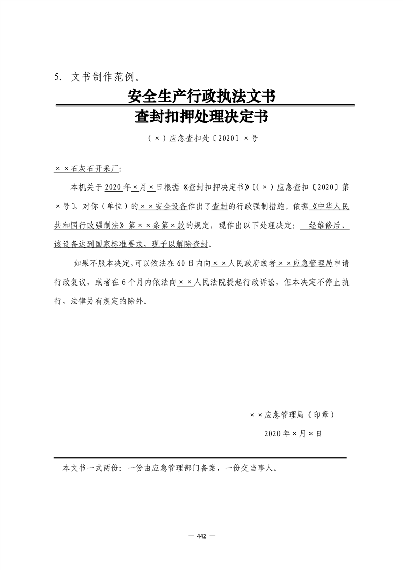 新源縣應(yīng)急管理局安全生產(chǎn)執(zhí)法文書樣式及說明