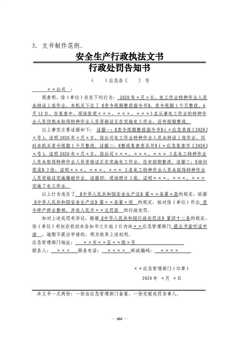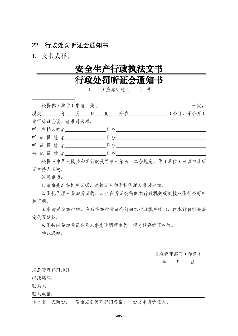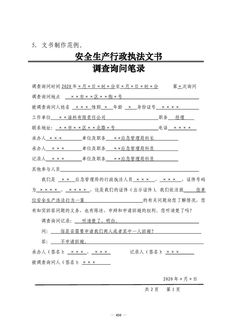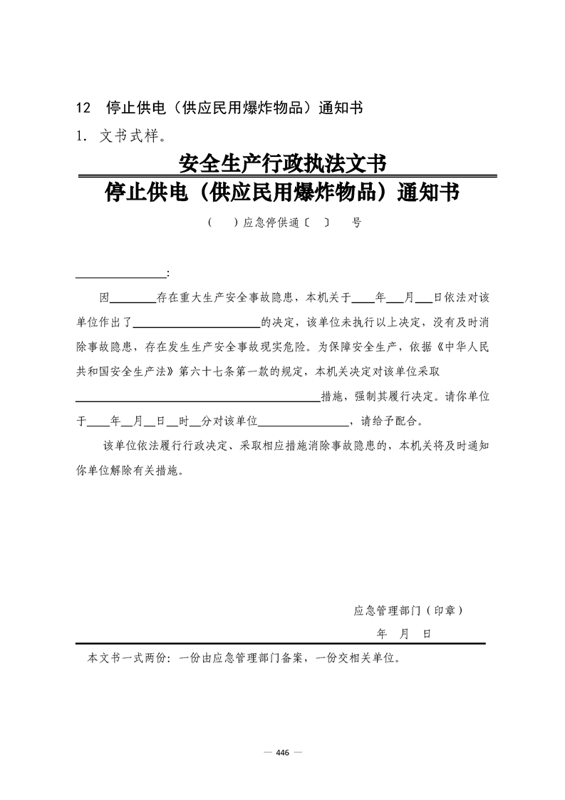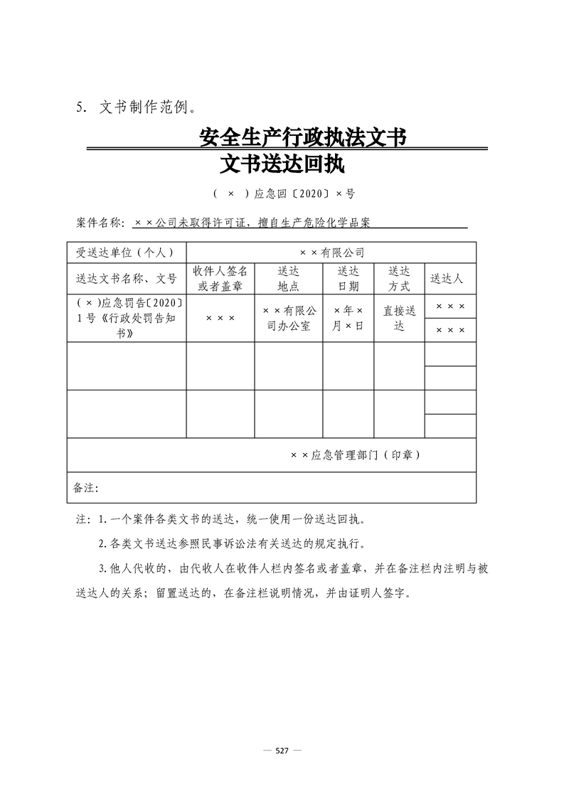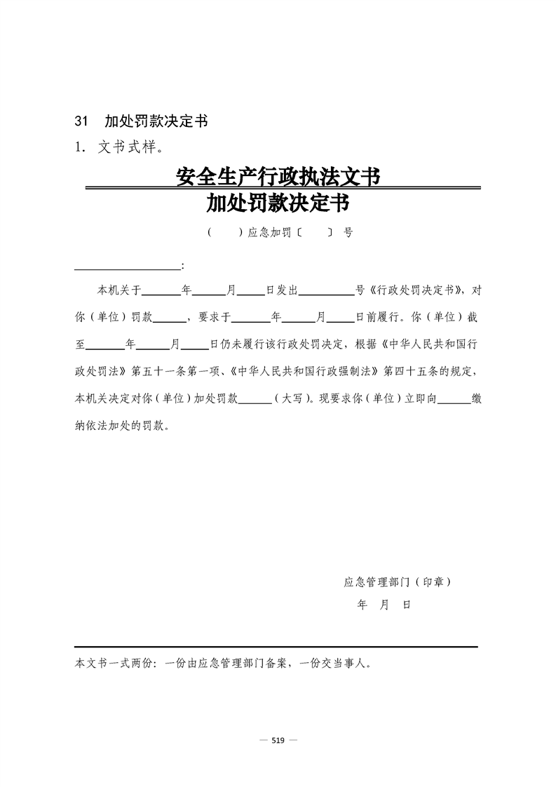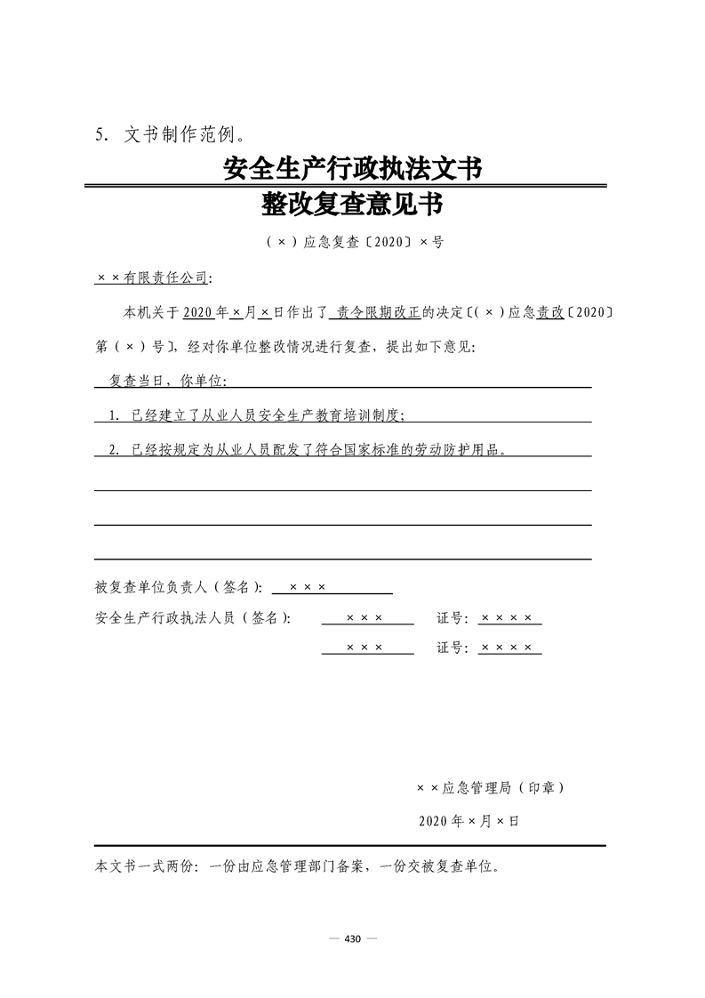 新源縣應(yīng)急管理局安全生產(chǎn)執(zhí)法文書樣式及說明