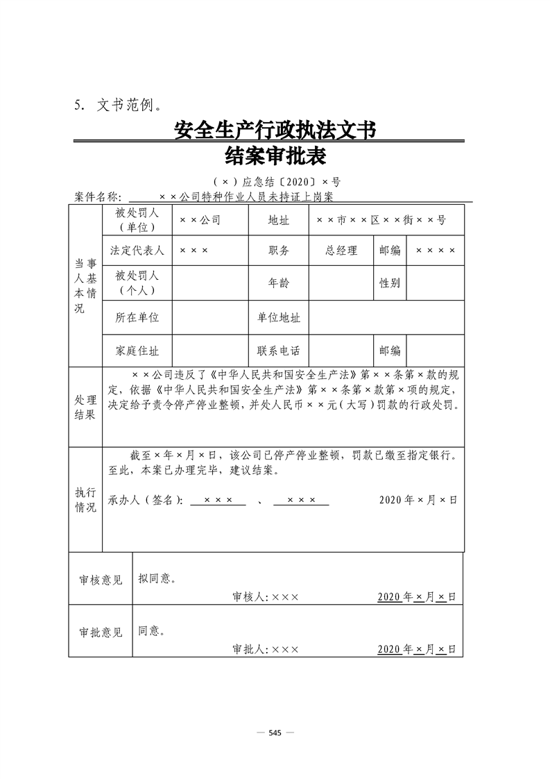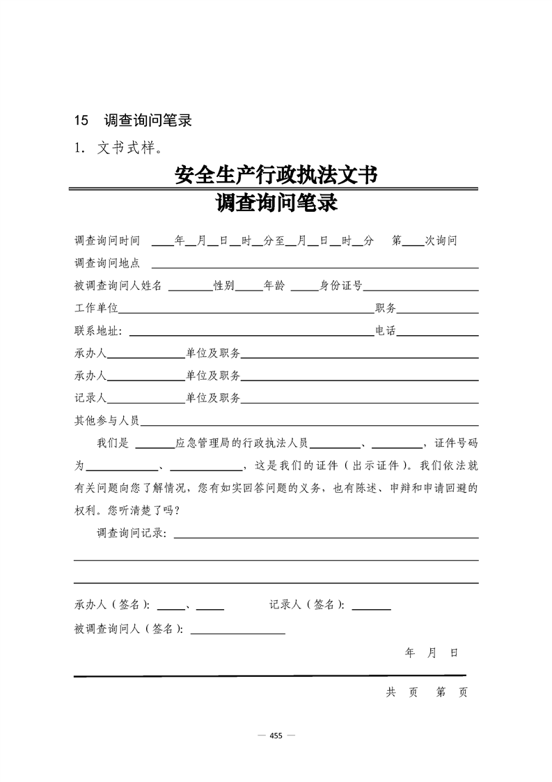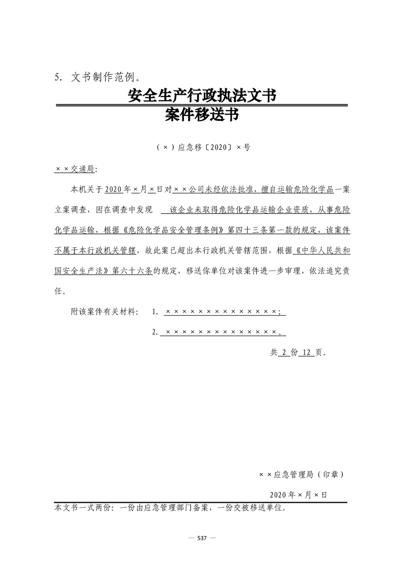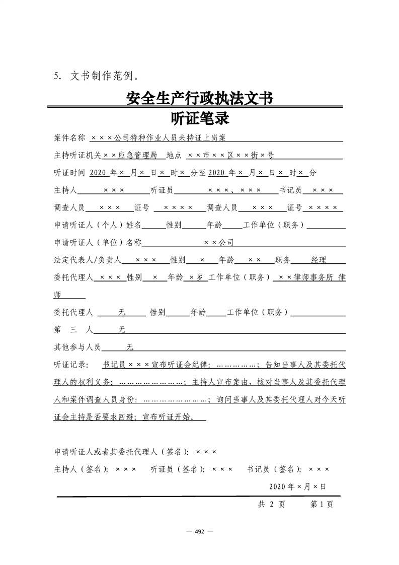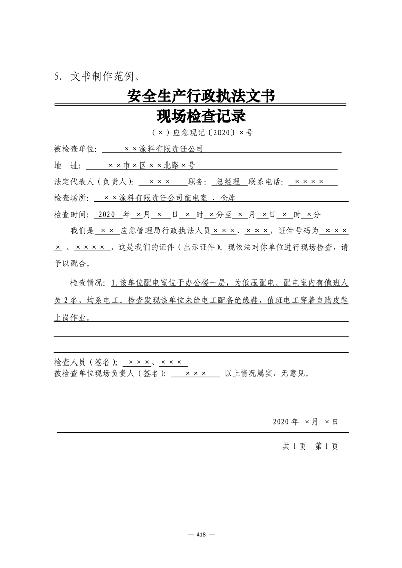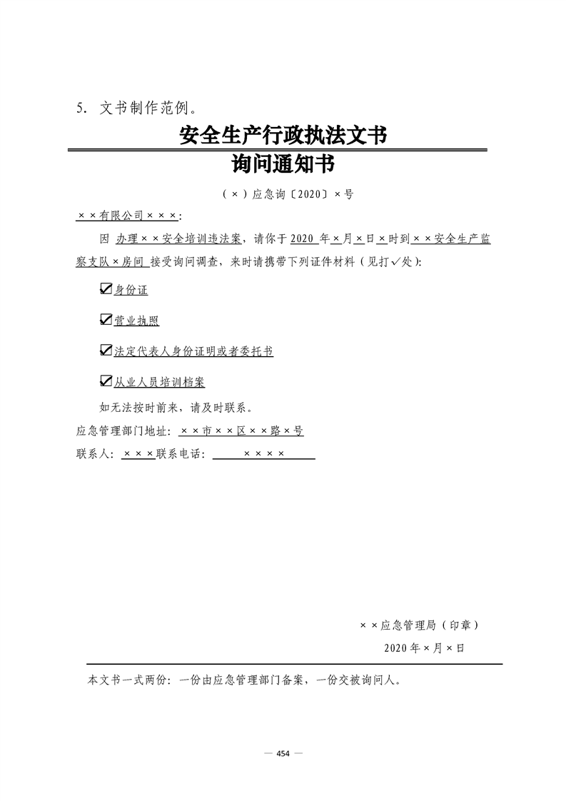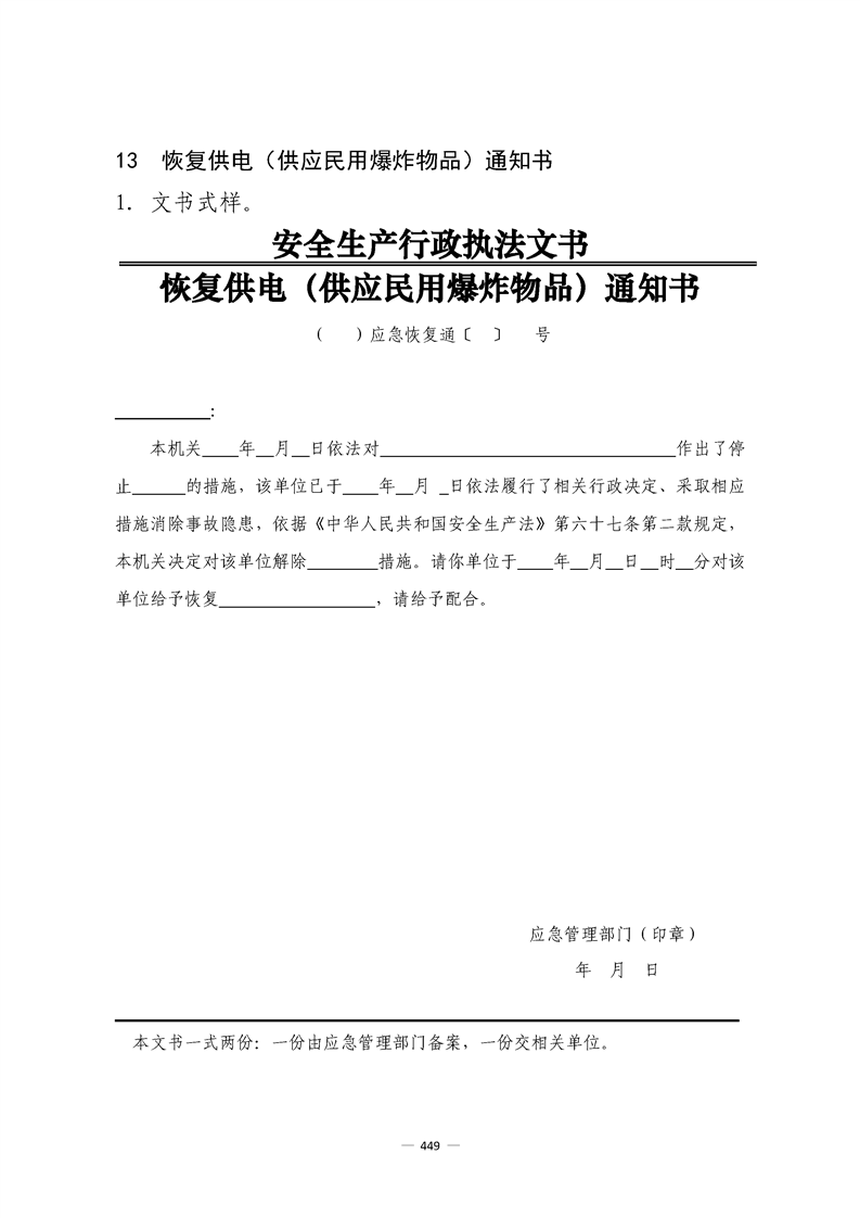 新源縣應(yīng)急管理局安全生產(chǎn)執(zhí)法文書樣式及說明