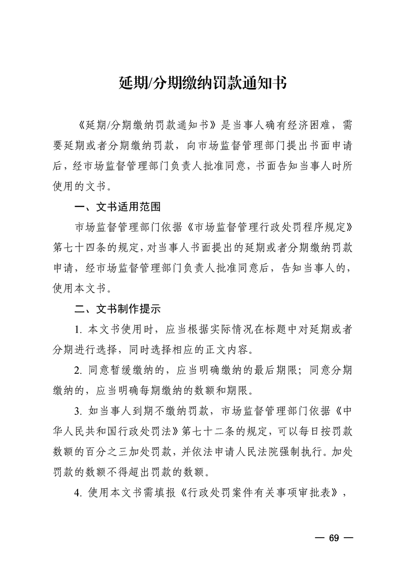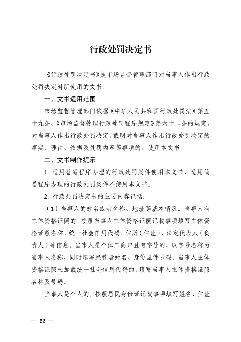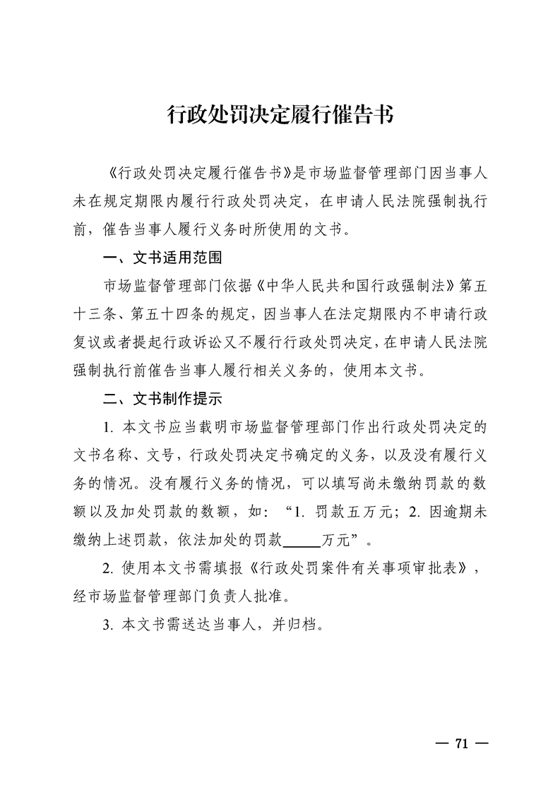 市場監督管理行政處罰文書格式范本及使用指南(2021年修訂版)