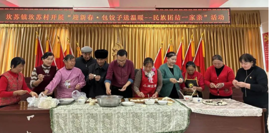 為慶祝冬至的到來,坎蘇鎮坎蘇村村“兩委”和駐村工作隊開展“迎新春·包餃子送溫暖——民族團結一家親”活動。