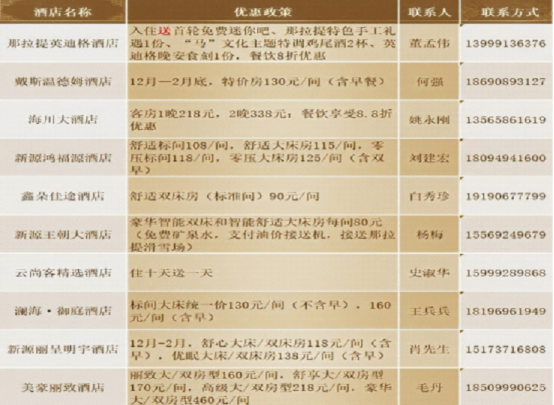 2025年12月22日-2026年3月31日(以雪季結束時間為準),持有伊犁州直各S級滑雪場購票憑證的游客,可享受以下酒店優惠價格: